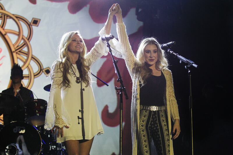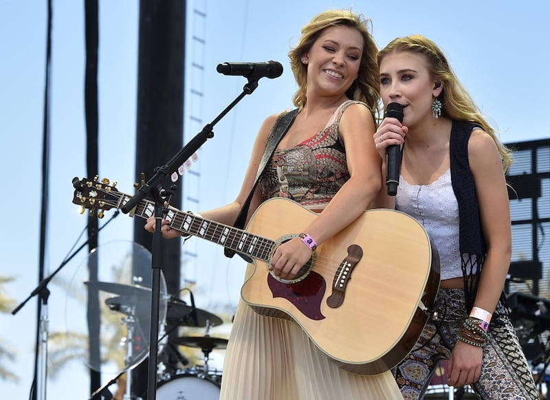 2015 Stagecoach California's Country Music Festival - Day 3 INDIO, CA - APRIL 26: Singers Tae Dye (L) and Maddie Marlow of Maddie & Tae perform onstage during day three of 2015 Stagecoach, California's Country Music Festival, at The Empire Polo Club on April 26, 2015 in Indio, California. (Photo by Kevin Winter/Getty Images for Stagecoach) (Kevin Winter)