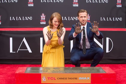 Ryan Gosling And Emma Stone Hand And Footprint Ceremony HOLLYWOOD, CA - DECEMBER 07: Actors Emma Stone (L) and Ryan Gosling attend 'Ryan Gosling and Emma Stone hand and footprint ceremony' at TCL Chinese Theatre IMAX on December 7, 2016 in Hollywood, California. (Photo by Emma McIntyre/Getty Images) (Emma McIntyre/Getty Images)