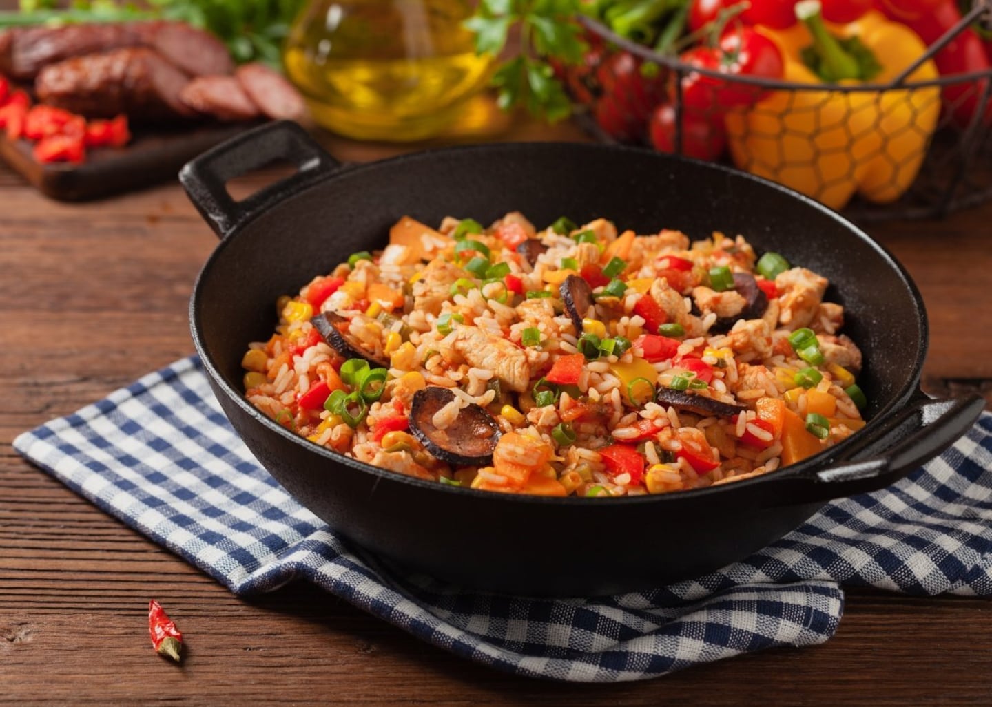 The Creole dish of jambalaya, a rice-based dish filled with various meats and vegetables prepared in a single pot, is made possible by the cooking influences of Native Americans, West Africans, Spanish, and French. The history of Louisiana as a territory from the mid-1600s to the early 1800s makes it possible to see how these influences came together.