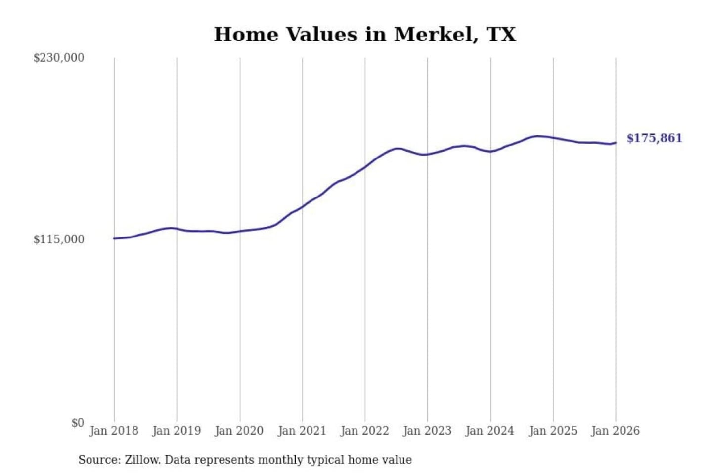 Stacker compiled a list of cities with the most expensive homes in the Abilene, TX metro area using data from Zillow. Charts show the monthly typical home value since January 2018.