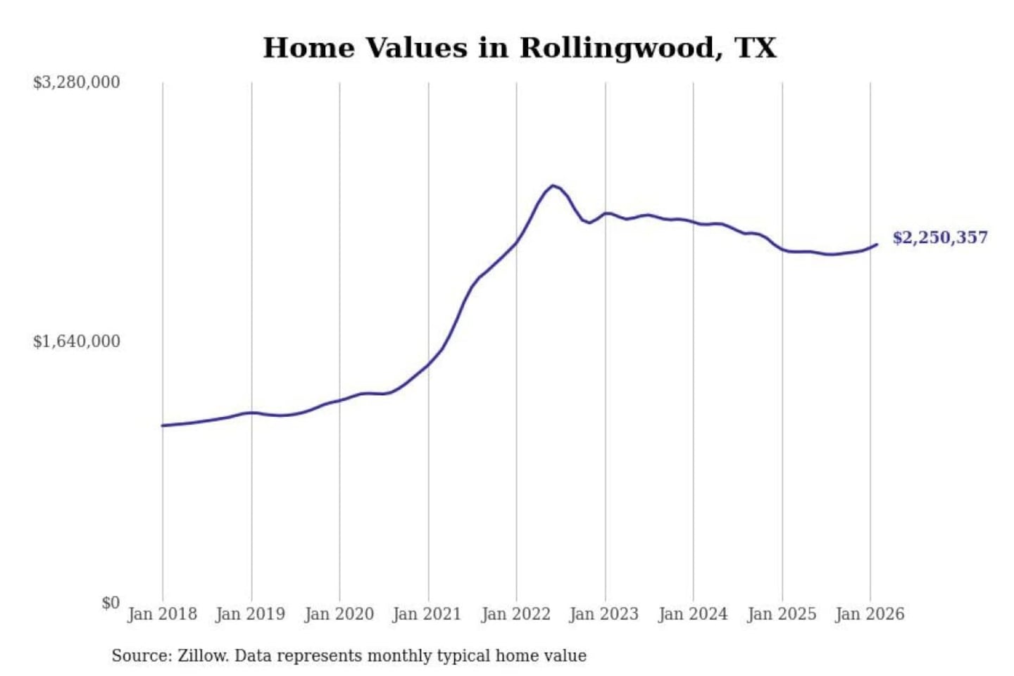 - Typical home value: $2,250,357