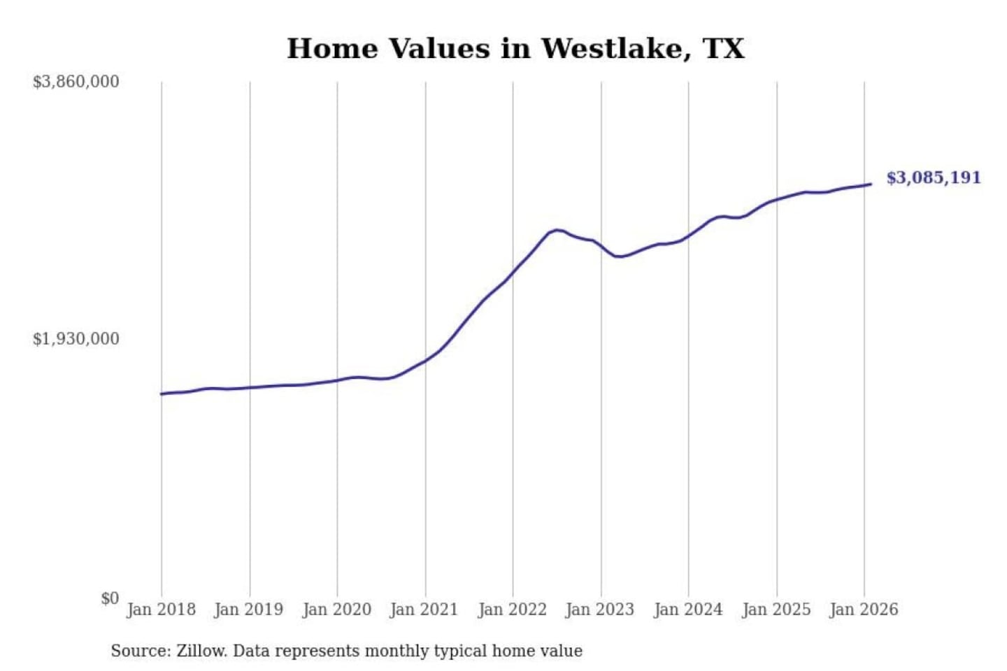 - Typical home value: $3,085,191