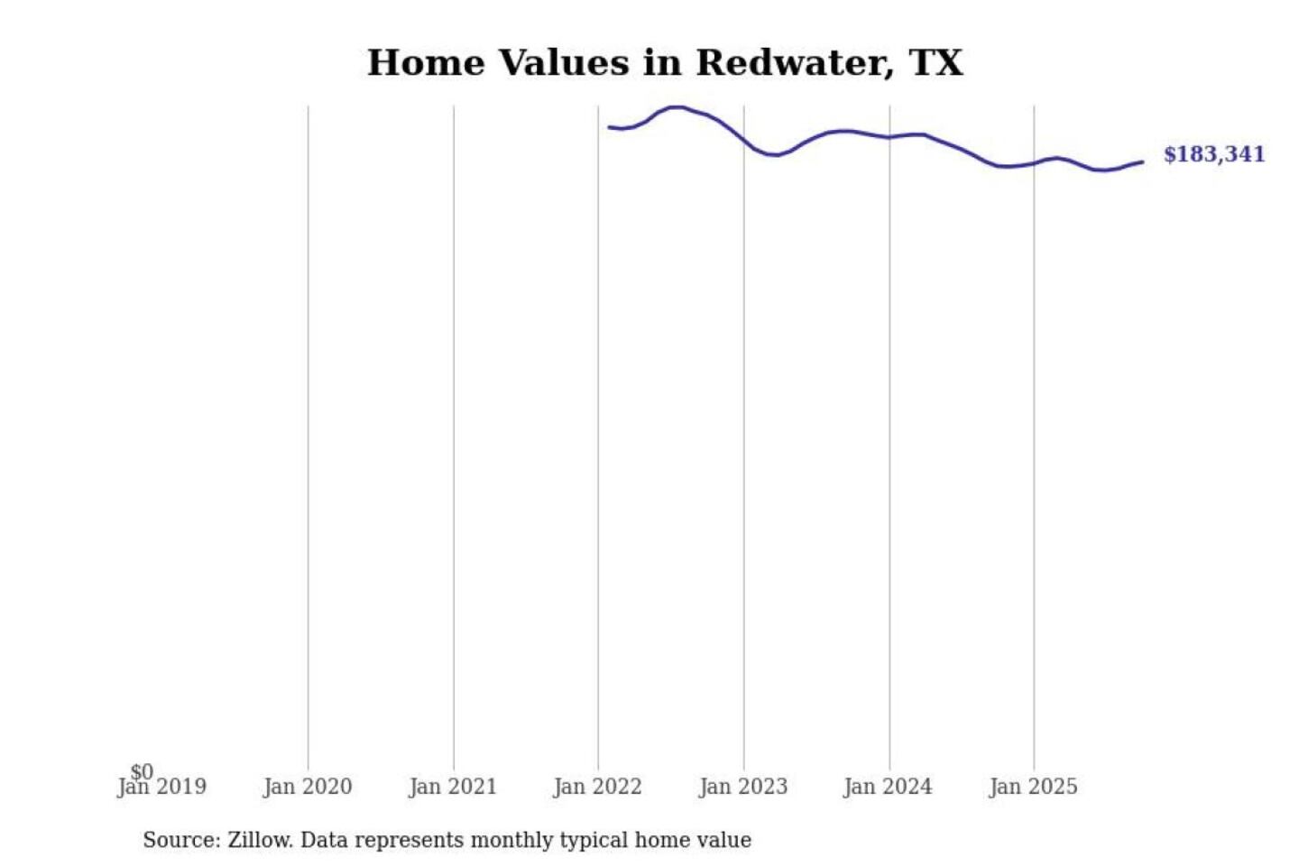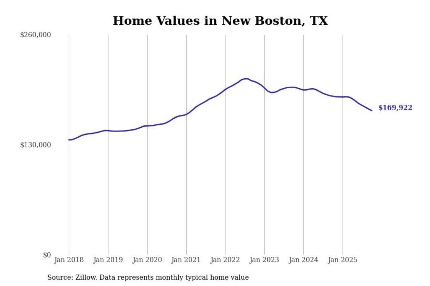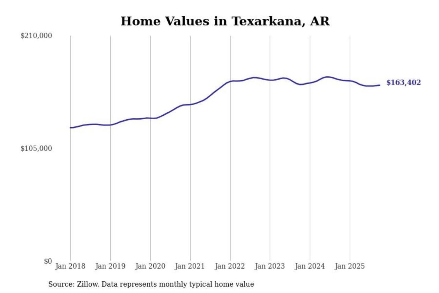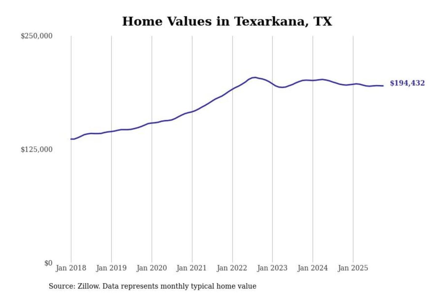 Stacker compiled a list of cities with the most expensive homes in the Texarkana metro area using data from Zillow. Charts show the monthly typical home value since January 2018. All 15 cities and towns with data available were included in the list.
