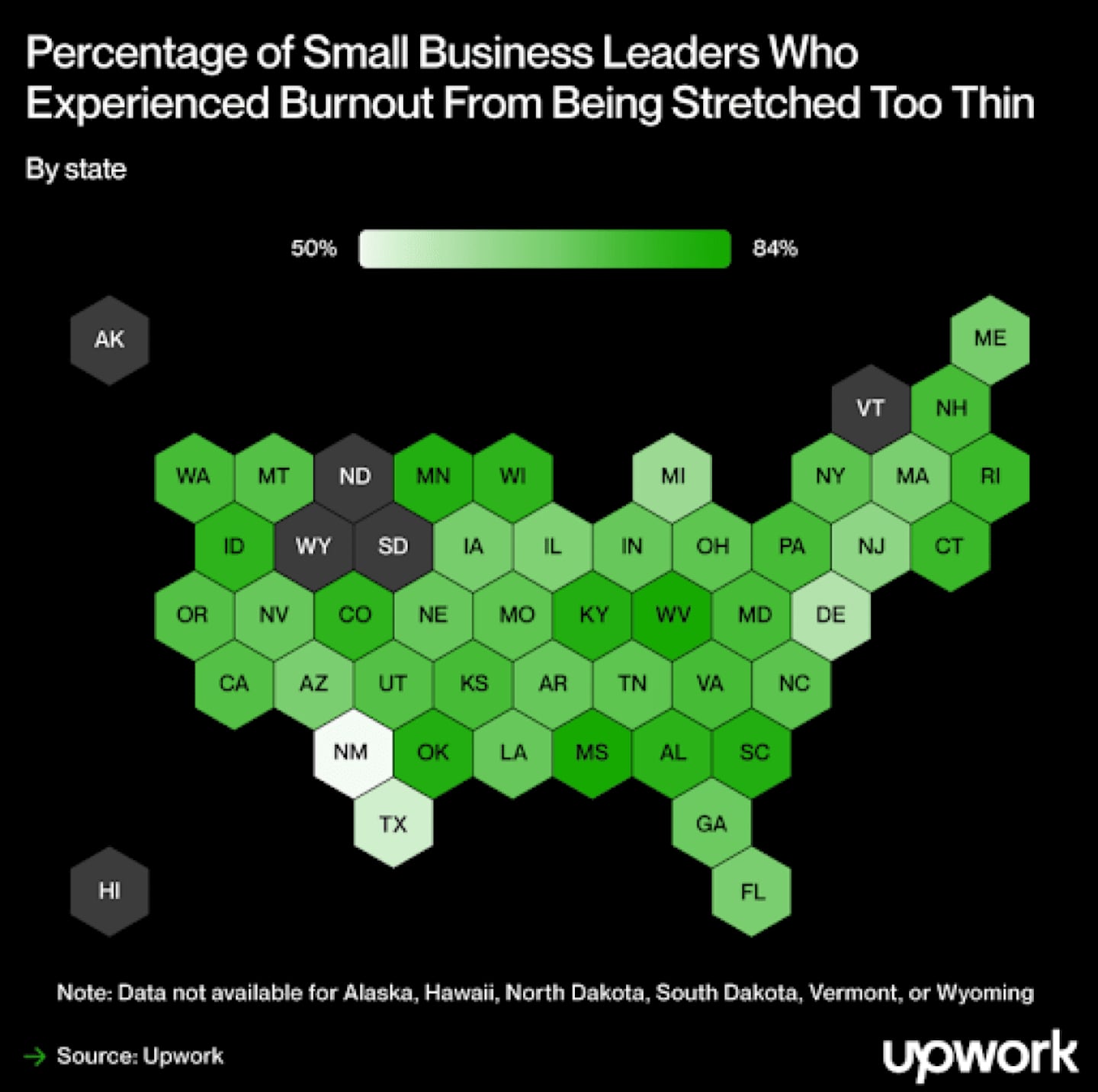 About 61% of SMB leaders in Texas in Upwork's report said that tasks outside their core responsibilities take up time they could be spending on more strategic aspects of the business, and 63% believe that delegating more would help them achieve better results. Fully 78% knew just which tasks they would offload first if they could.