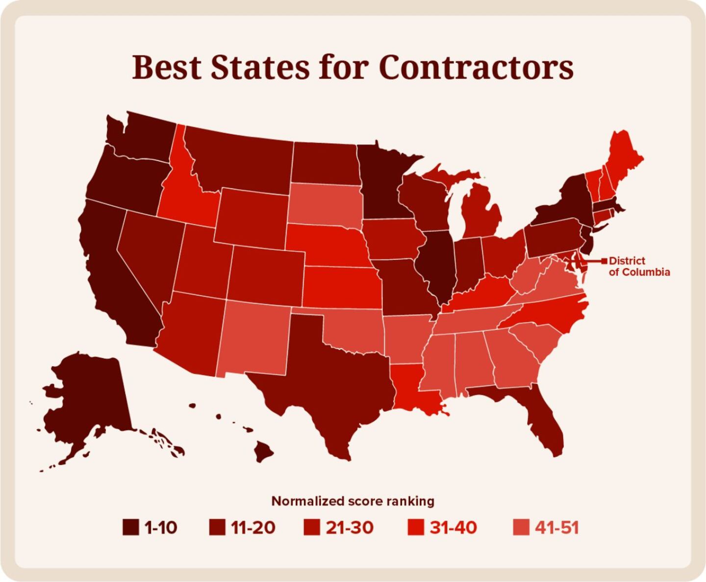 To determine the best states for contractors and tradesmen, this study analyzed data for all 50 states plus Washington, D.C., using nine relevant metrics.