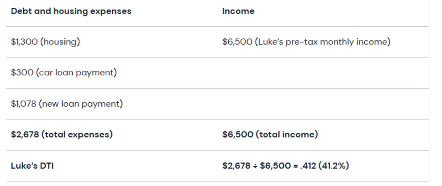 Most home equity lenders will consider Luke’s DTI to be within the acceptable range to qualify for a new loan.